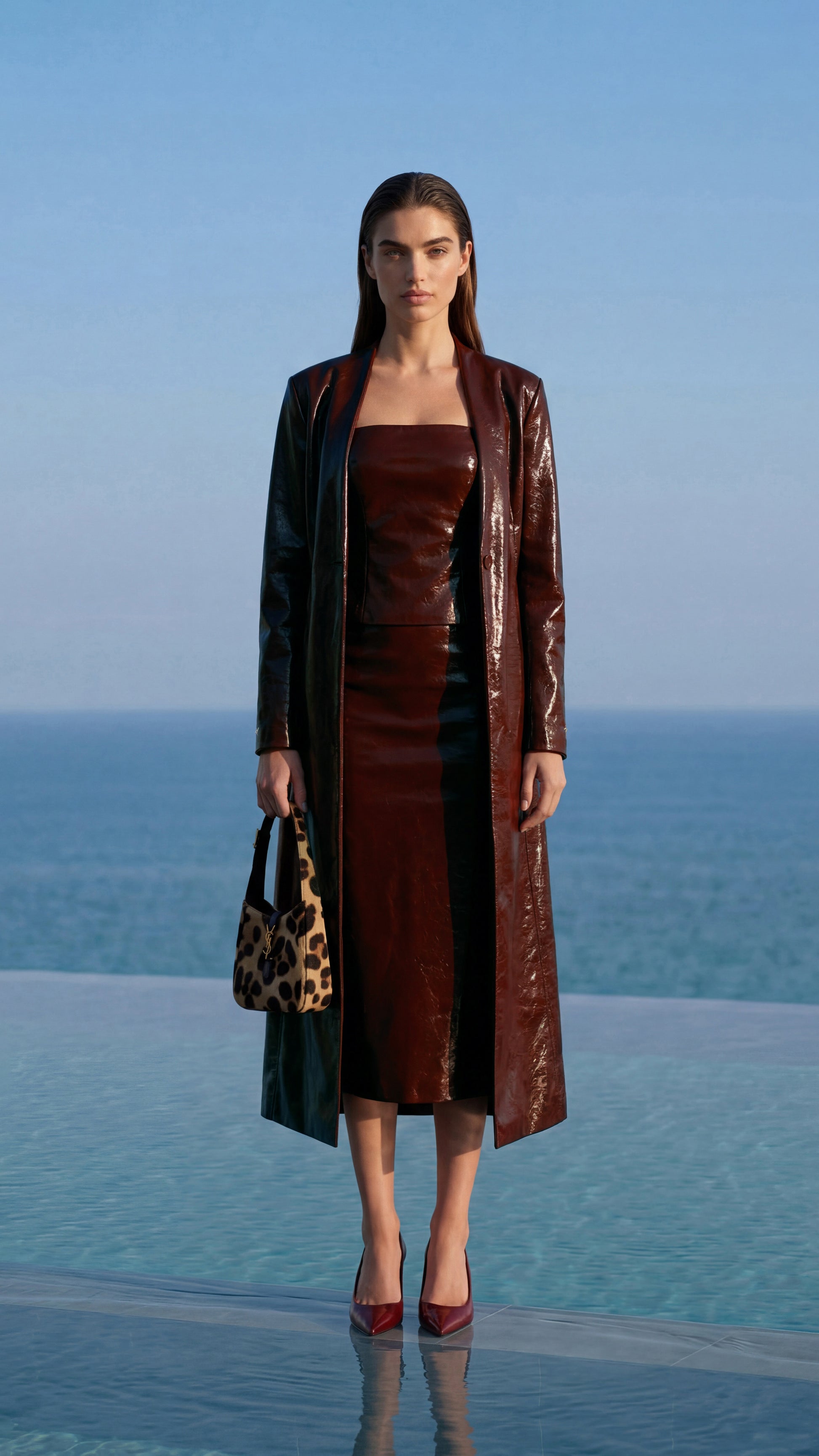Milano Overcoat – Vegan Leather Long Coat in Brown Bordeaux